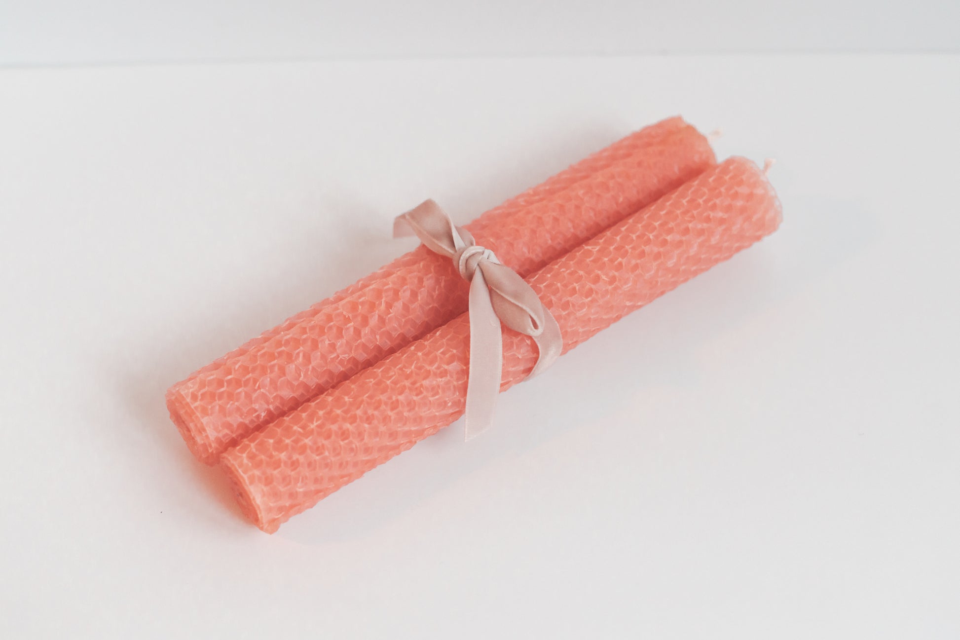 Brighten your space with this delightful set of two handmade rolled beeswax candles! Lovingly crafted by our daughters, every purchase helps them earn while adding a warm, honeyed glow to your table or festive décor. Choose from sunny yellow or charming pink to spark joy and cozy vibes in any room. These candles are the perfect little touch for a cheerful and inviting atmosphere.